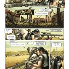 Critique : Dans notre monde en proie à diverses angoisses, le genre post-apocalyptique a le vent en poupe, en raison de sa capacité à exorciser nos démons et à soulever de grandes questions. Scénariste chevronné habitué aux récits de l’imaginaire, Nicolas Jarry (Nains, Le monde d’Aquilon, Terres d’Ogon…) s’associe au dessinateur Thomas Legrain (L’Agence, Sisco, The Regiment), reconnu pour le réalisme et la précision de son trait. Ensemble, ils créent cet univers de science-fiction influencé par Gunnm et Ghost in the Shell, pour les méchas dotés de conscience. Le récit interroge ainsi le transhumanisme, un peu à la manière de la série Westworld, mais en partant de l’existence de la guerre et sans chercher à créer de ressemblance physique entre les hommes et les machines.